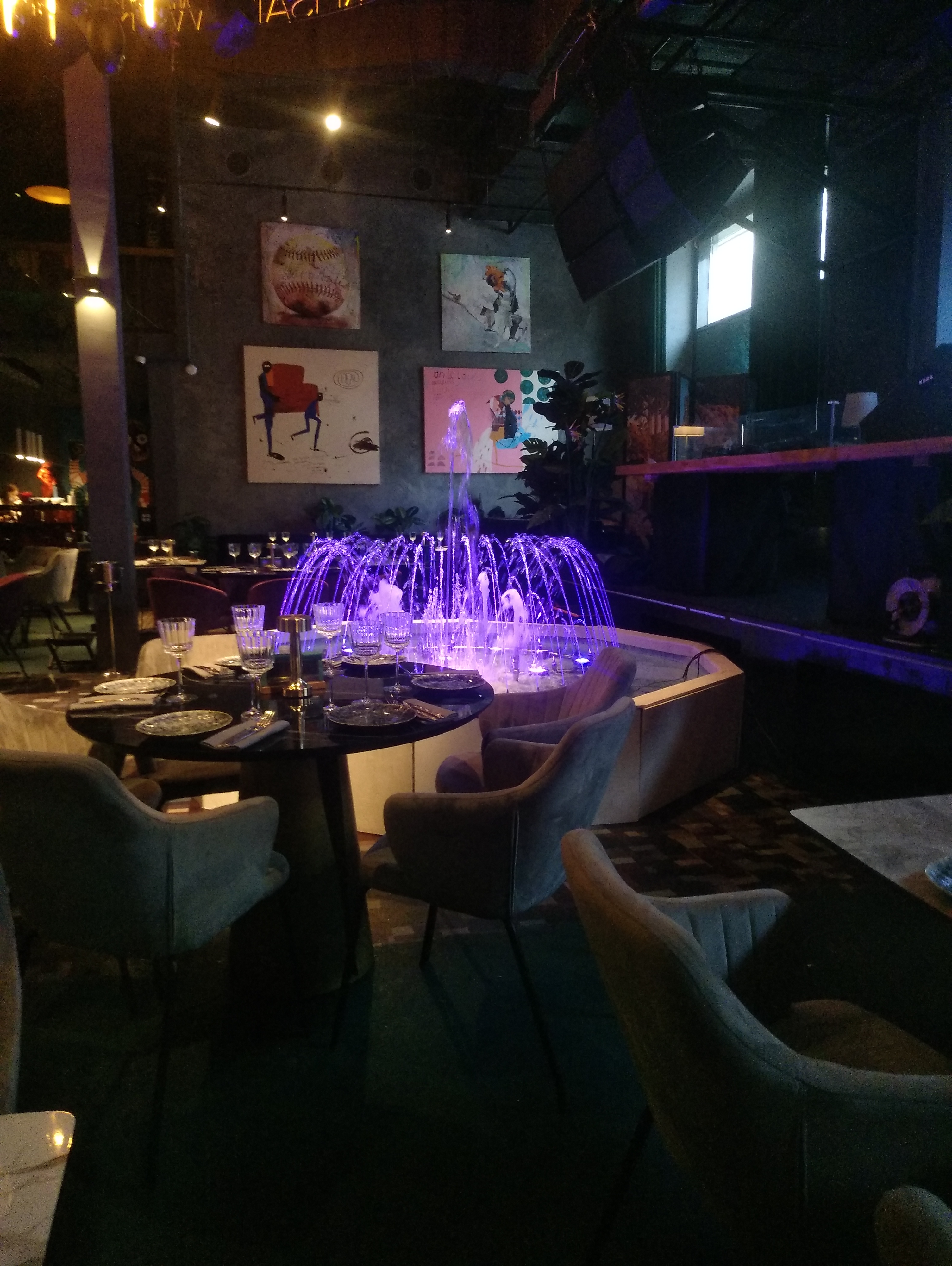 Чилл-аут зона с фонтаном, станет альтернативным центром притяжения гостей, местом, где незнакомые ранее люди смогут в непринужденной обстановке побеседовать на любые темы, отдохнуть и насладиться непосредственной красотой создаваемых водой, форм.