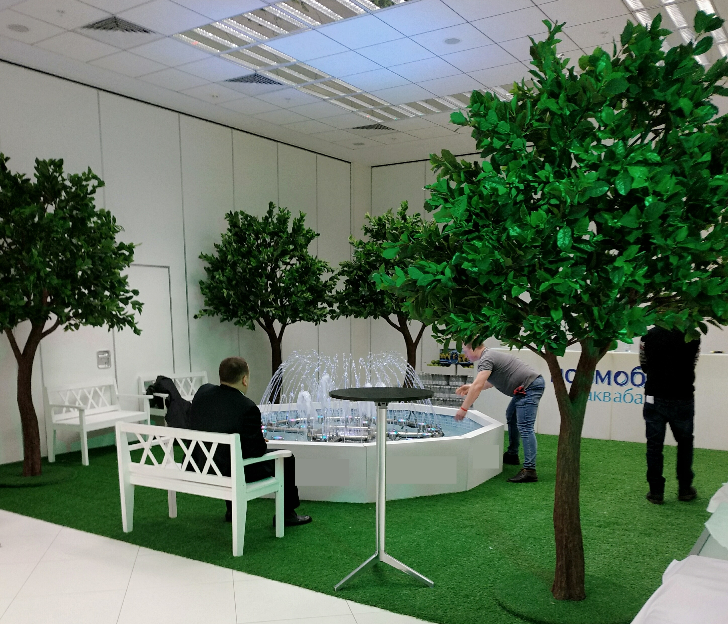 Фонтан у вашего стенда станет тем самым магнитом,который будет издалека притягивать внимание потенциальных клиентов, а так же уникальным ориентиром, позволяющим посетителям выставки безошибочно находить Вас.